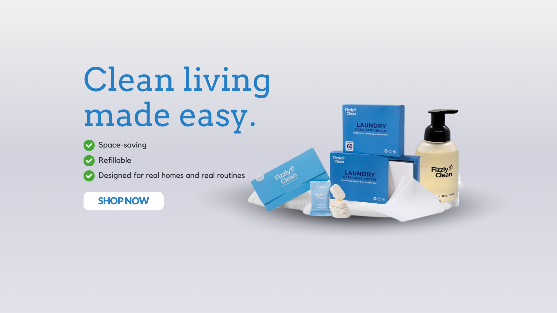 Fizzly Clean creates eco-friendly, mess-free home care products designed for everyday living. From refillable foaming hand soap to space-saving laundry detergent sheets, our solutions help reduce plastic waste while making your routine easier.